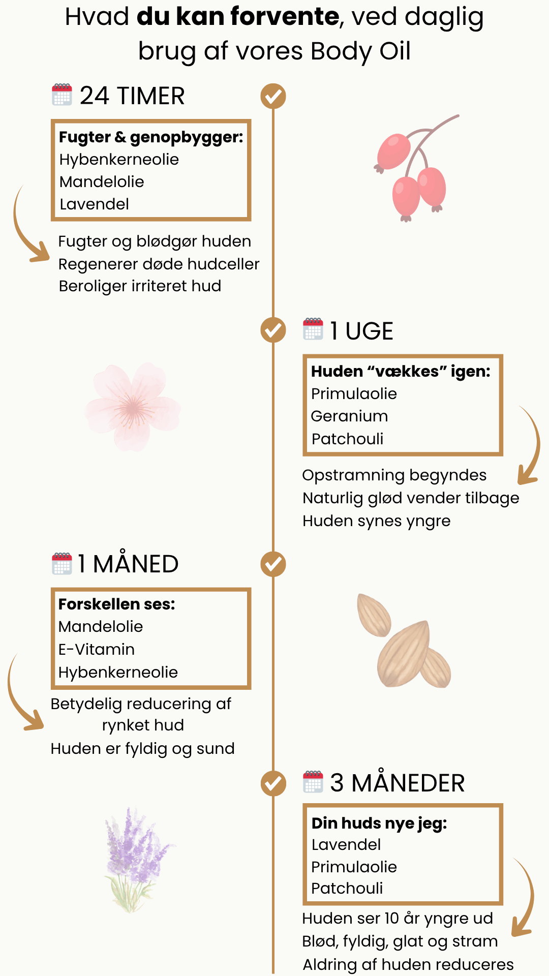 Brug vores body oil en gang dagligt for at opnå de bedste resultater.